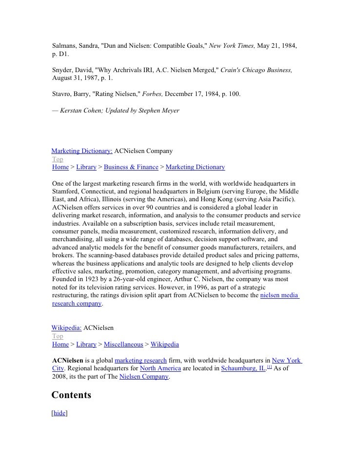 Month to the A.C. Nielsen Center for Marketing Research and their mission to promote the industry. On July 1, 2011, leading global advertising, marketing and corporate communications company. Omnicom’s branded networks and ... Access Full Source